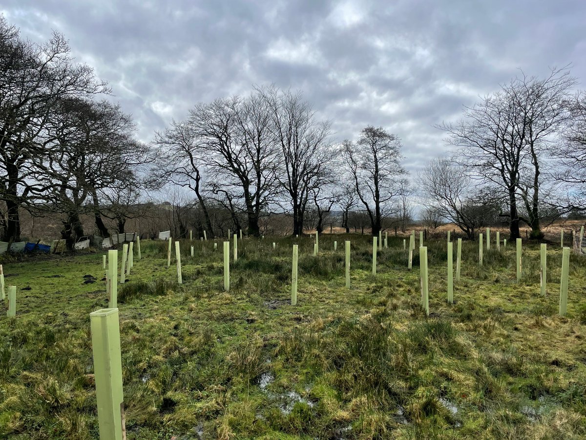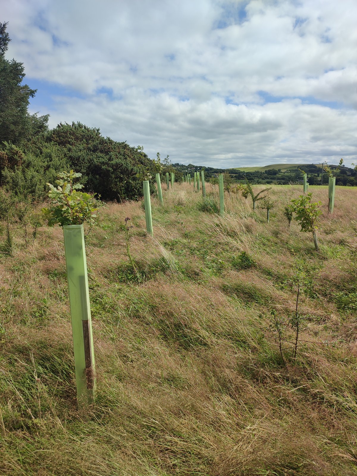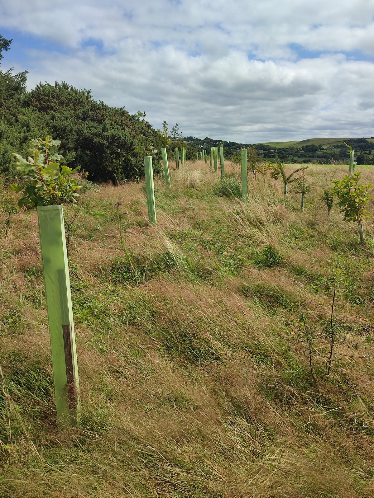 Some areas had a great survival rate, whereas other areas had extensive bracken growth leading to high losses. It was also difficult to find tree guards in areas where there were many competing grasses, although there was still a high survival rate in some patches.