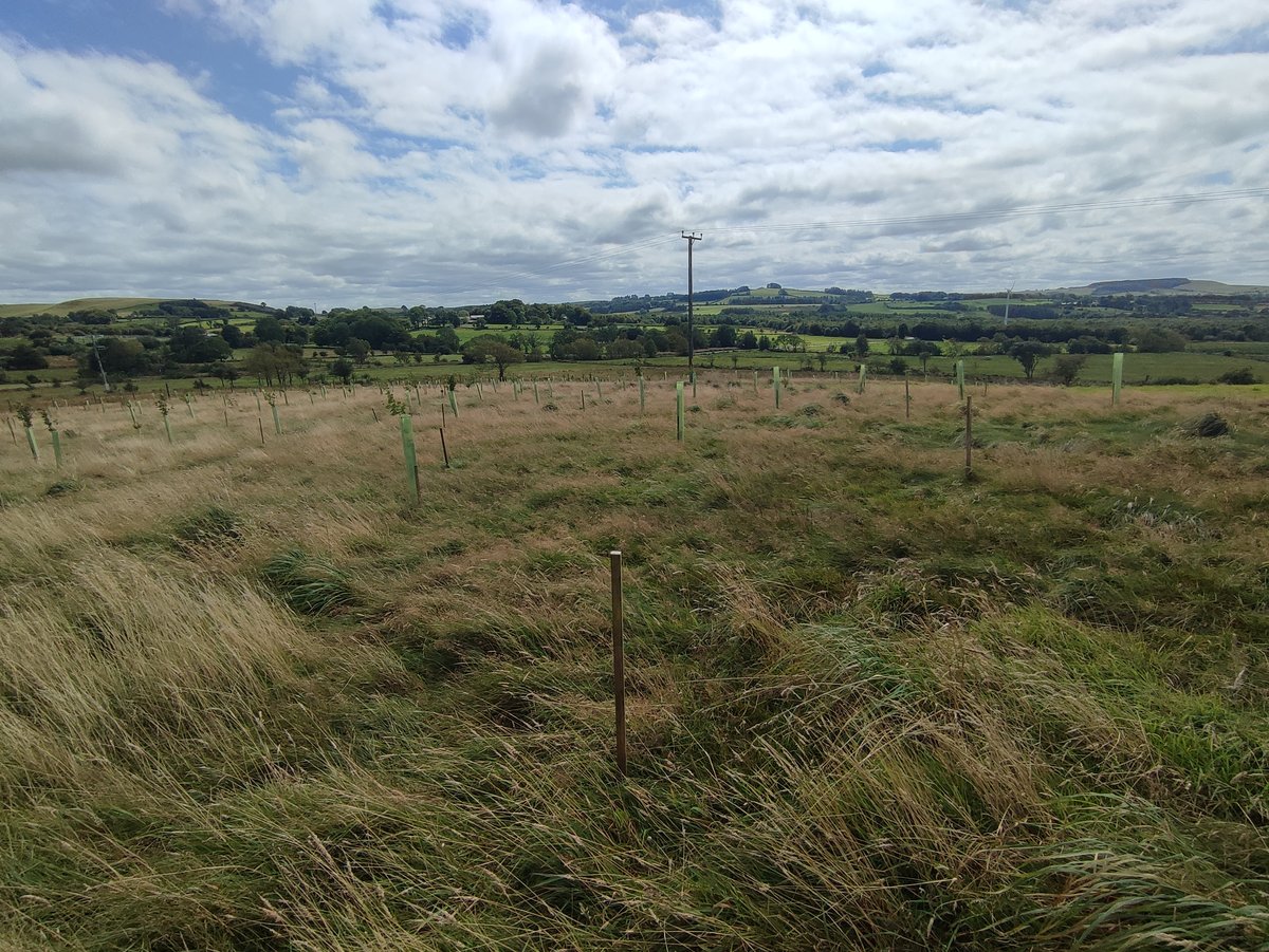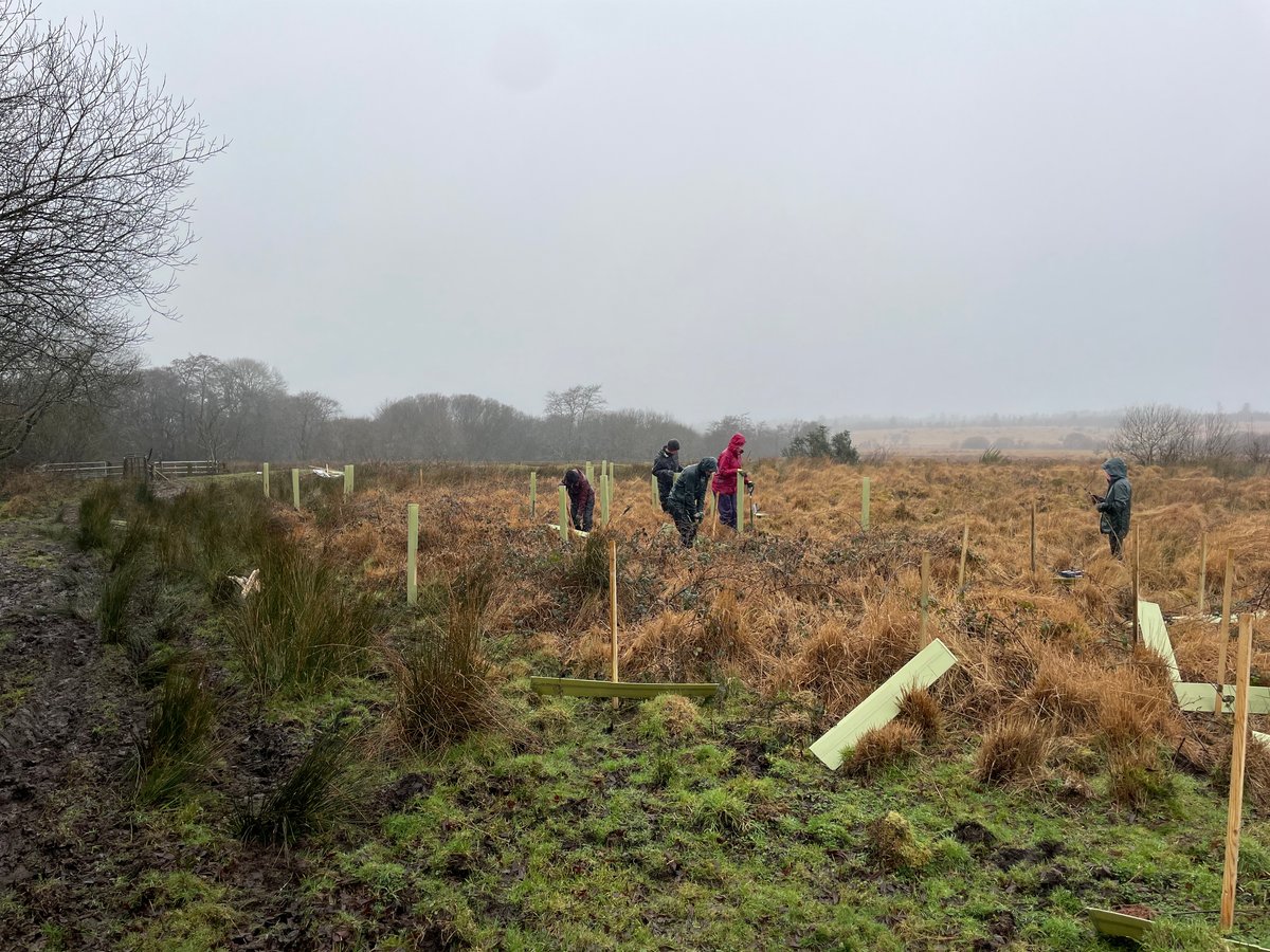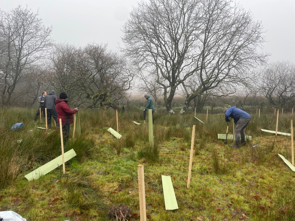 Brynwichell lies next to a large area of upland bog that is a SSSI. The surrounding area already supports interesting species such as barn owl, snipe and willow tit. During planting, a hen harrier was also observed passing over fields nearby.