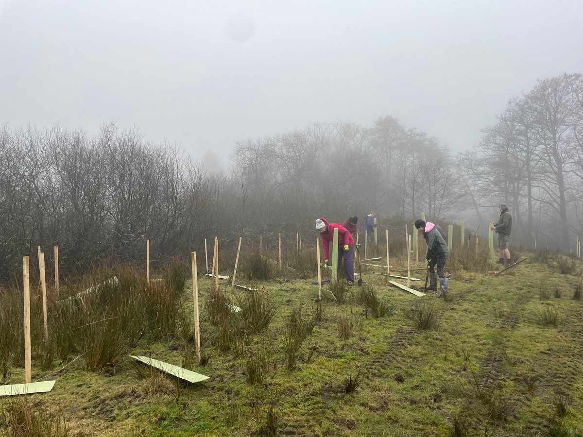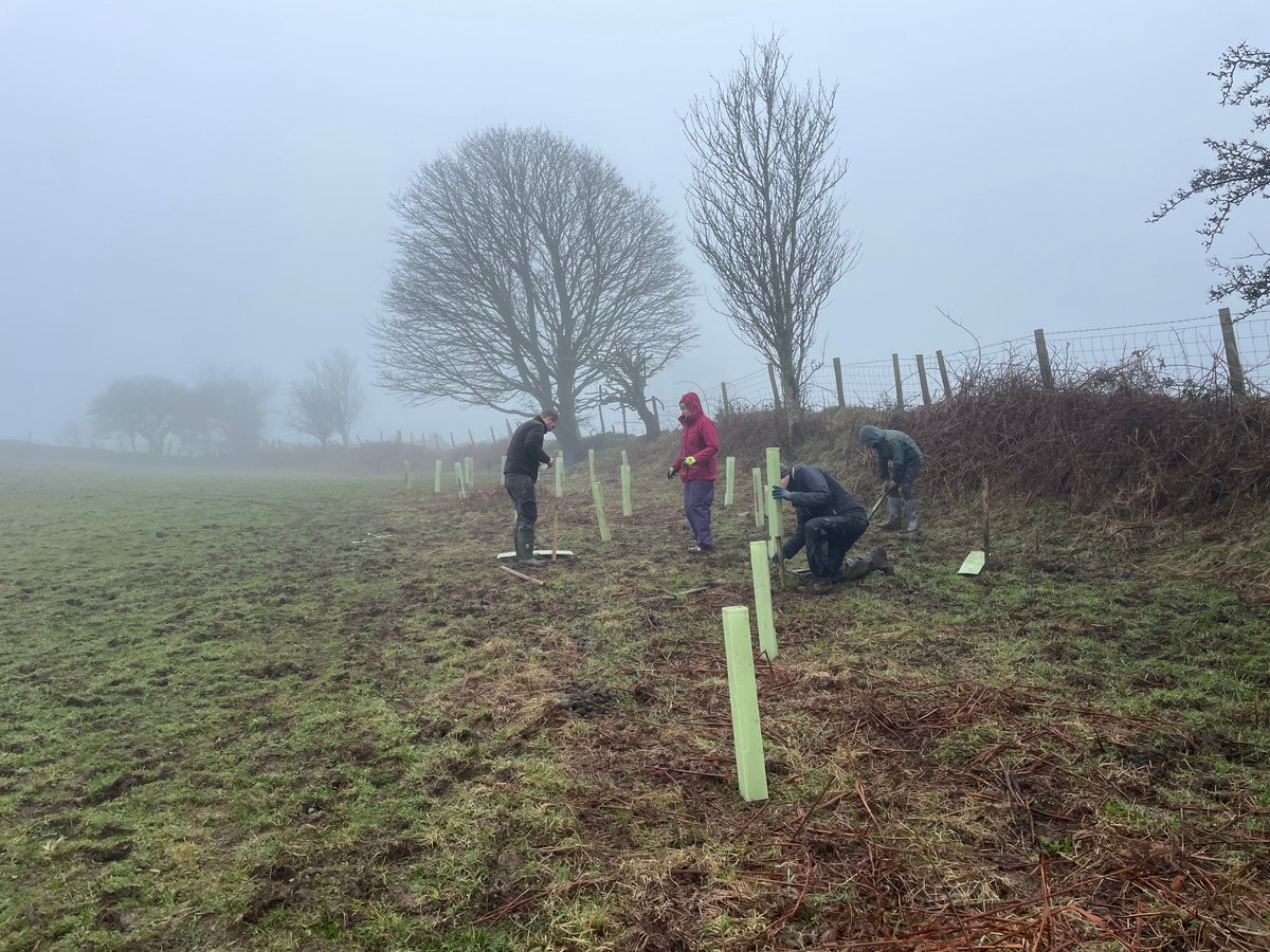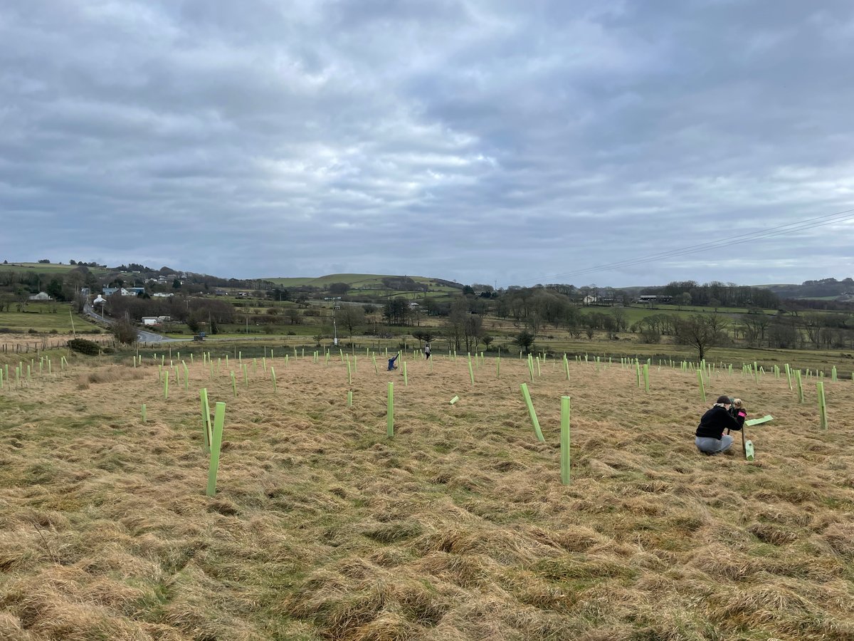 Brynwichell lies next to a large area of upland bog that is a SSSI. The surrounding area already supports interesting species such as barn owl, snipe and willow tit. During planting, a hen harrier was also observed passing over fields nearby.