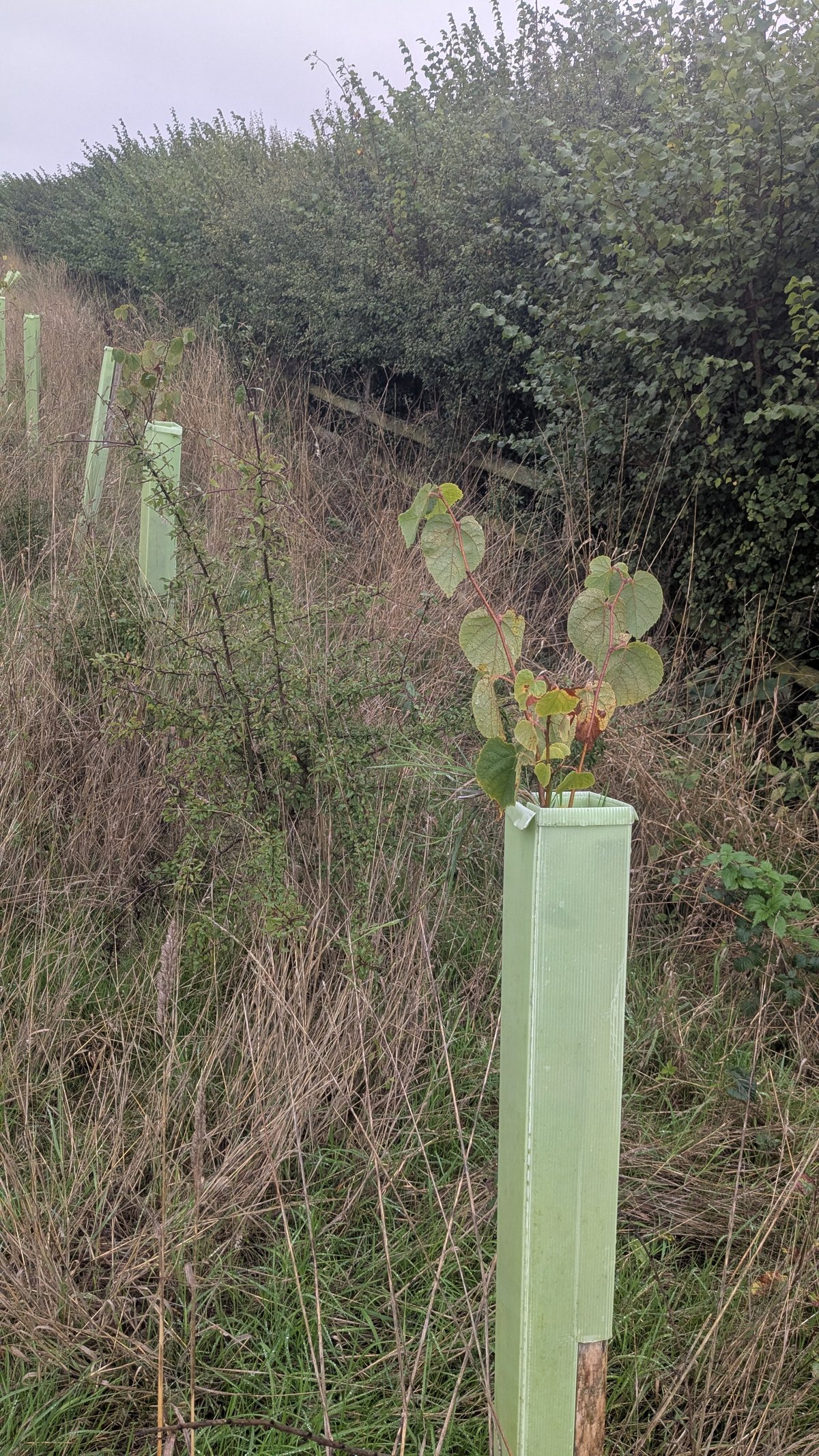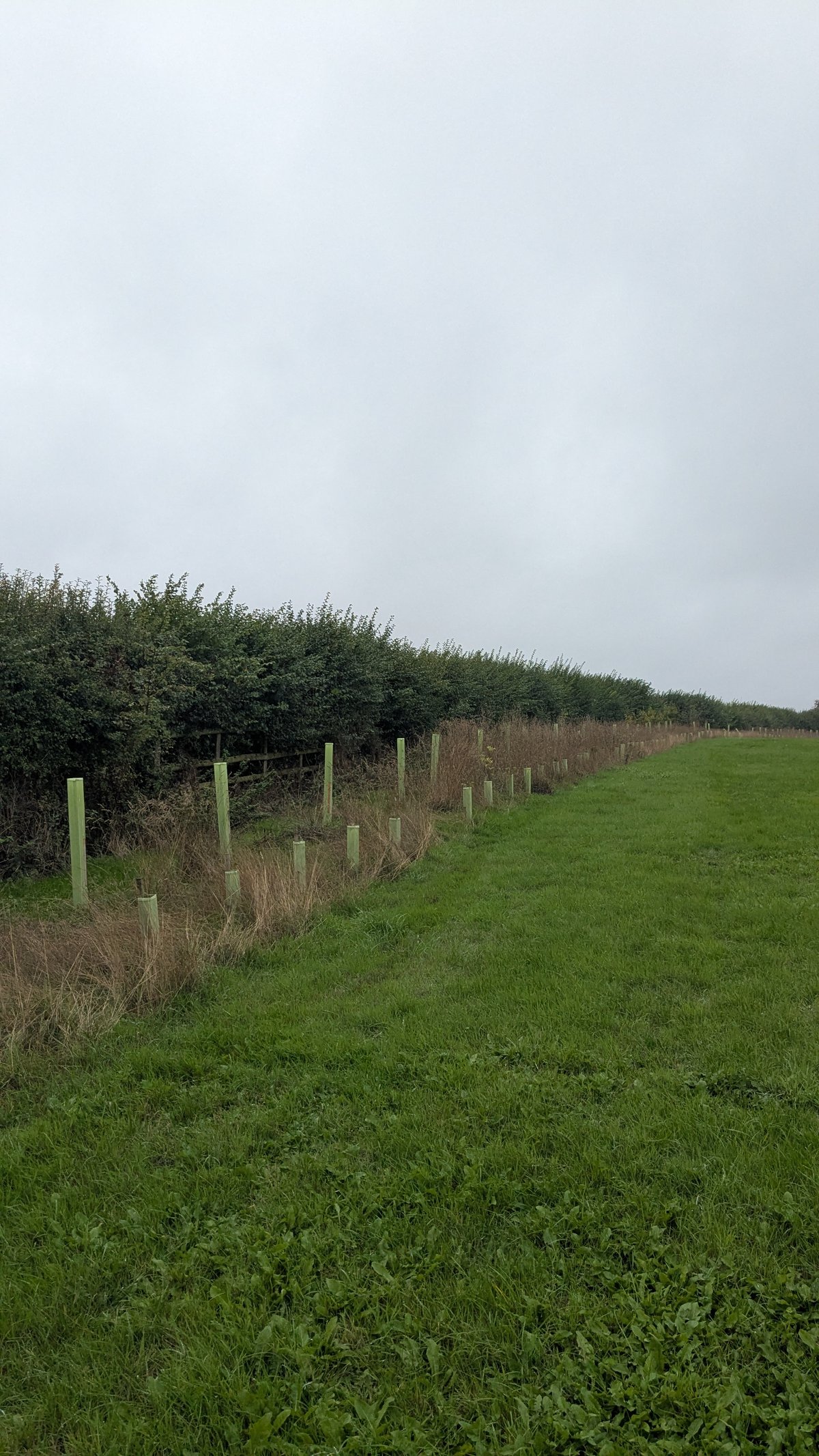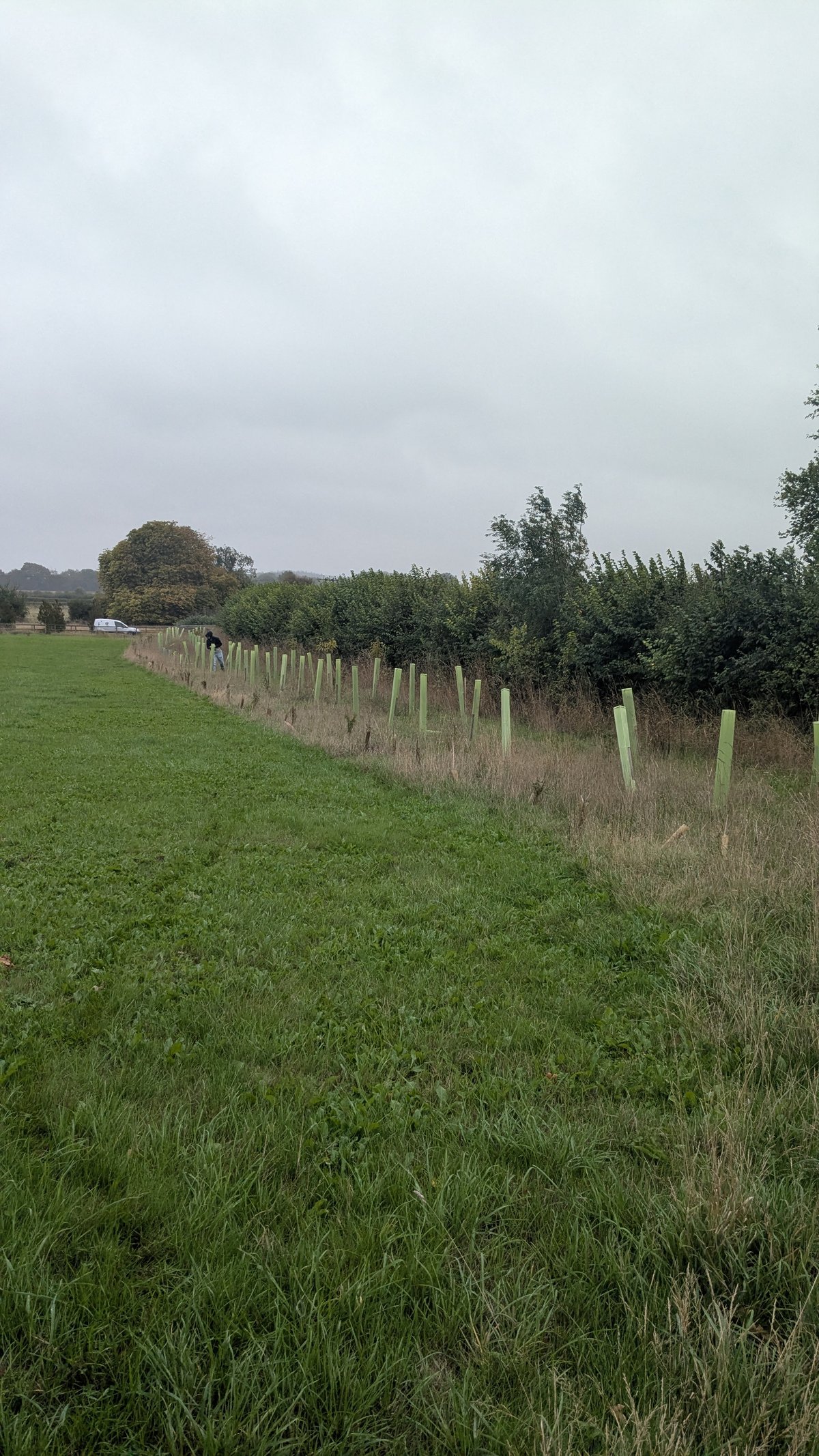 Corporate volunteers from Uddeholm UK helped with this. We also had a group of Vegan Runners from the Bristol area also on the Saturday and some local volunteers on the Sunday. We planted two shelterbelts next to the road to supplement the existing hedgerow.