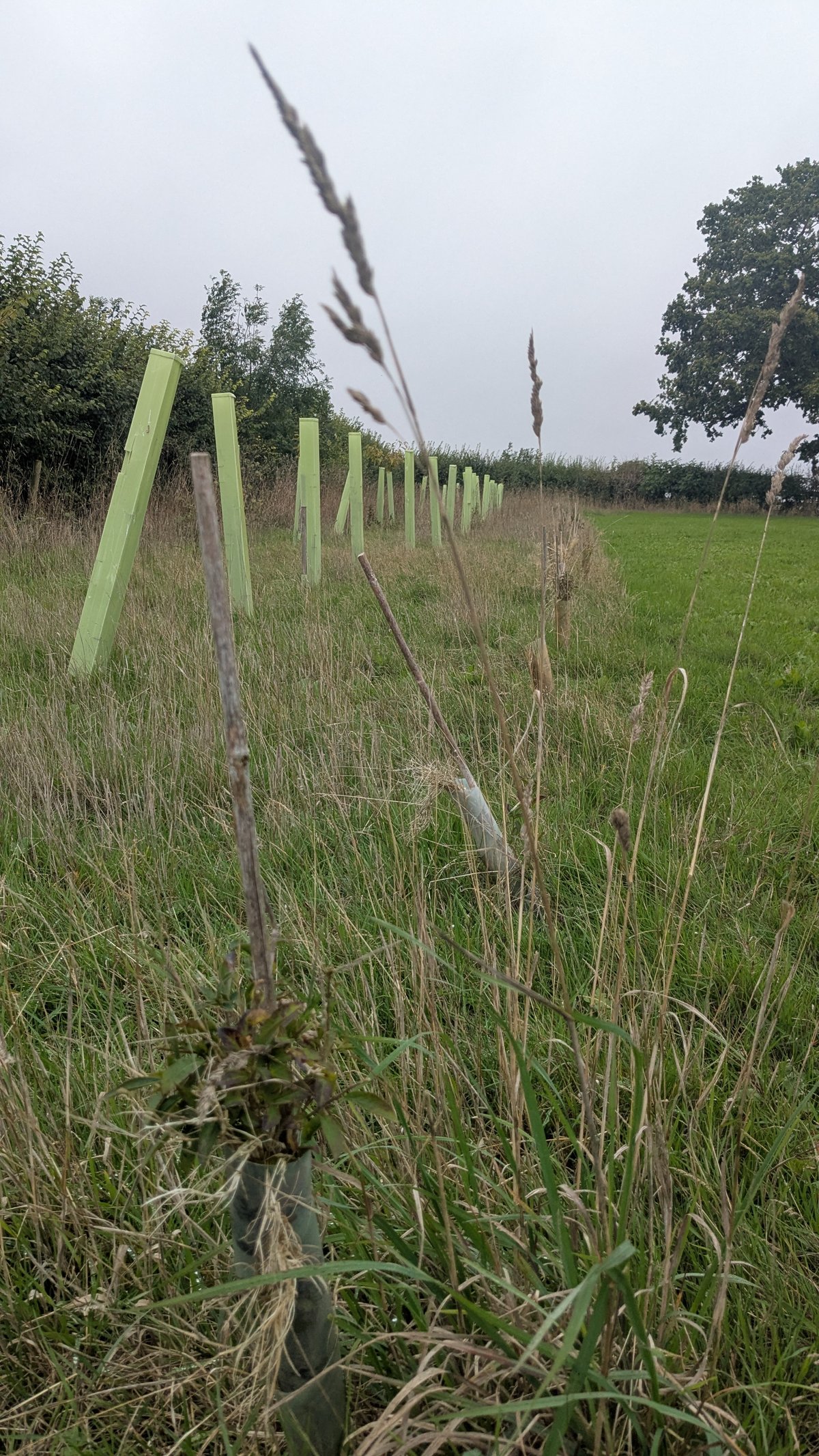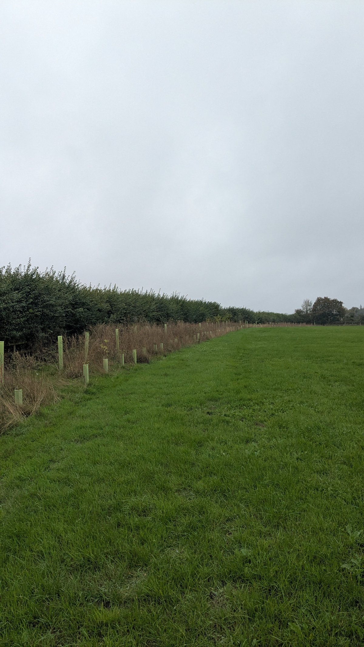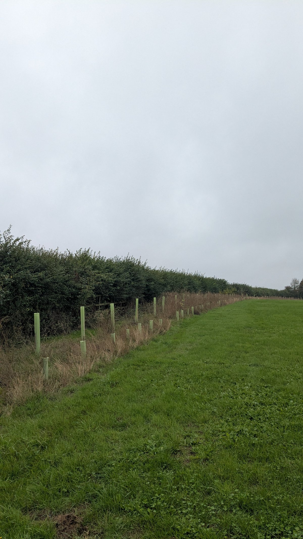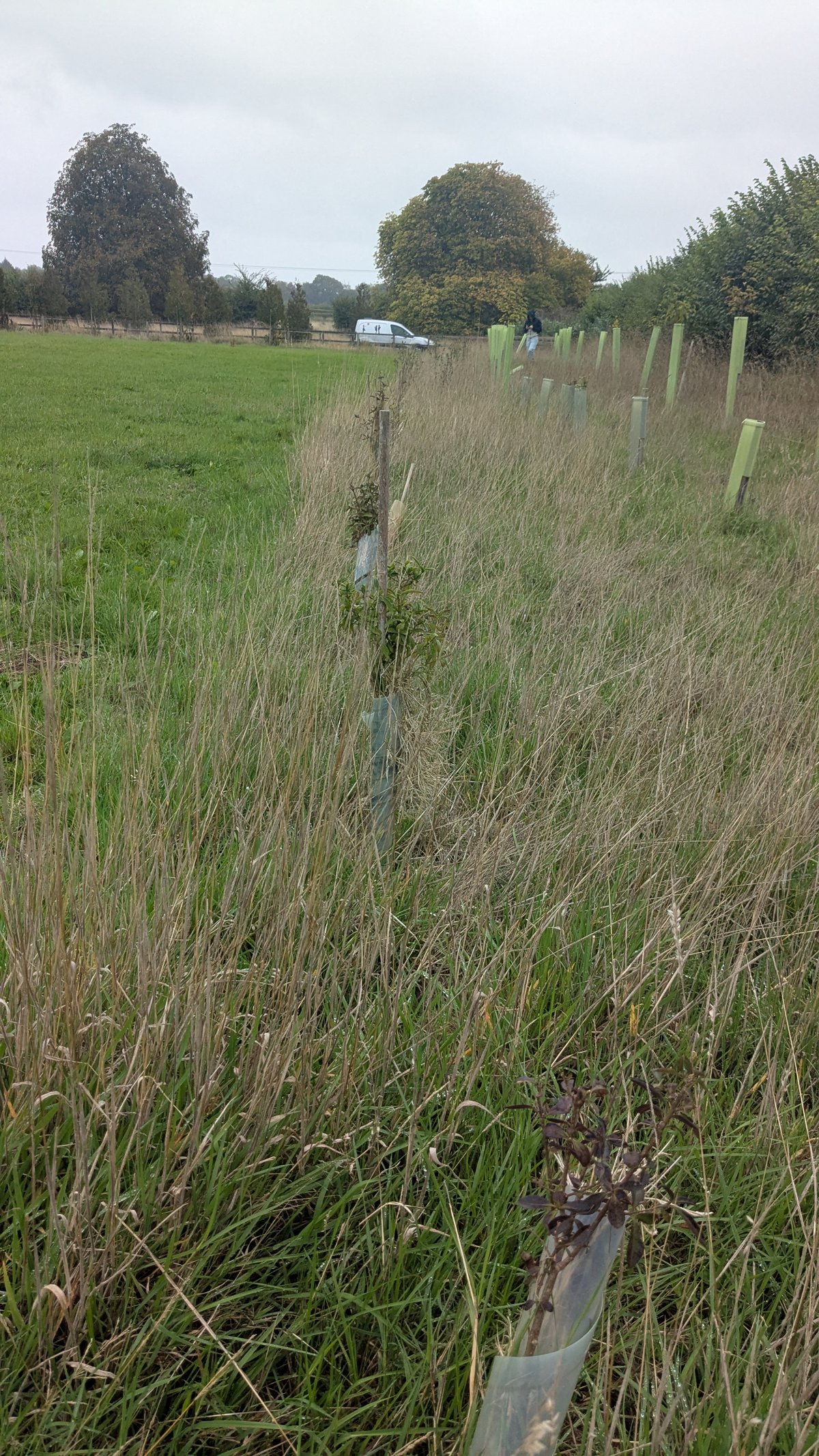 Corporate volunteers from Uddeholm UK helped with this. We also had a group of Vegan Runners from the Bristol area also on the Saturday and some local volunteers on the Sunday. We planted two shelterbelts next to the road to supplement the existing hedgerow.