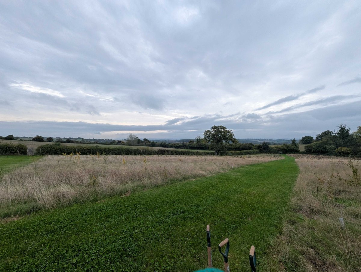 A dedicated team of 15 volunteers came together for a summer work session. Despite 30-degree heat and extremely dry, cracked ground, the group made steady progress with weed management, strimming around young trees, replacing lost saplings, and adding mulch and guards. The rain arrived late in the afternoon, bringing the day to a close after a productive few hours of maintenance.
