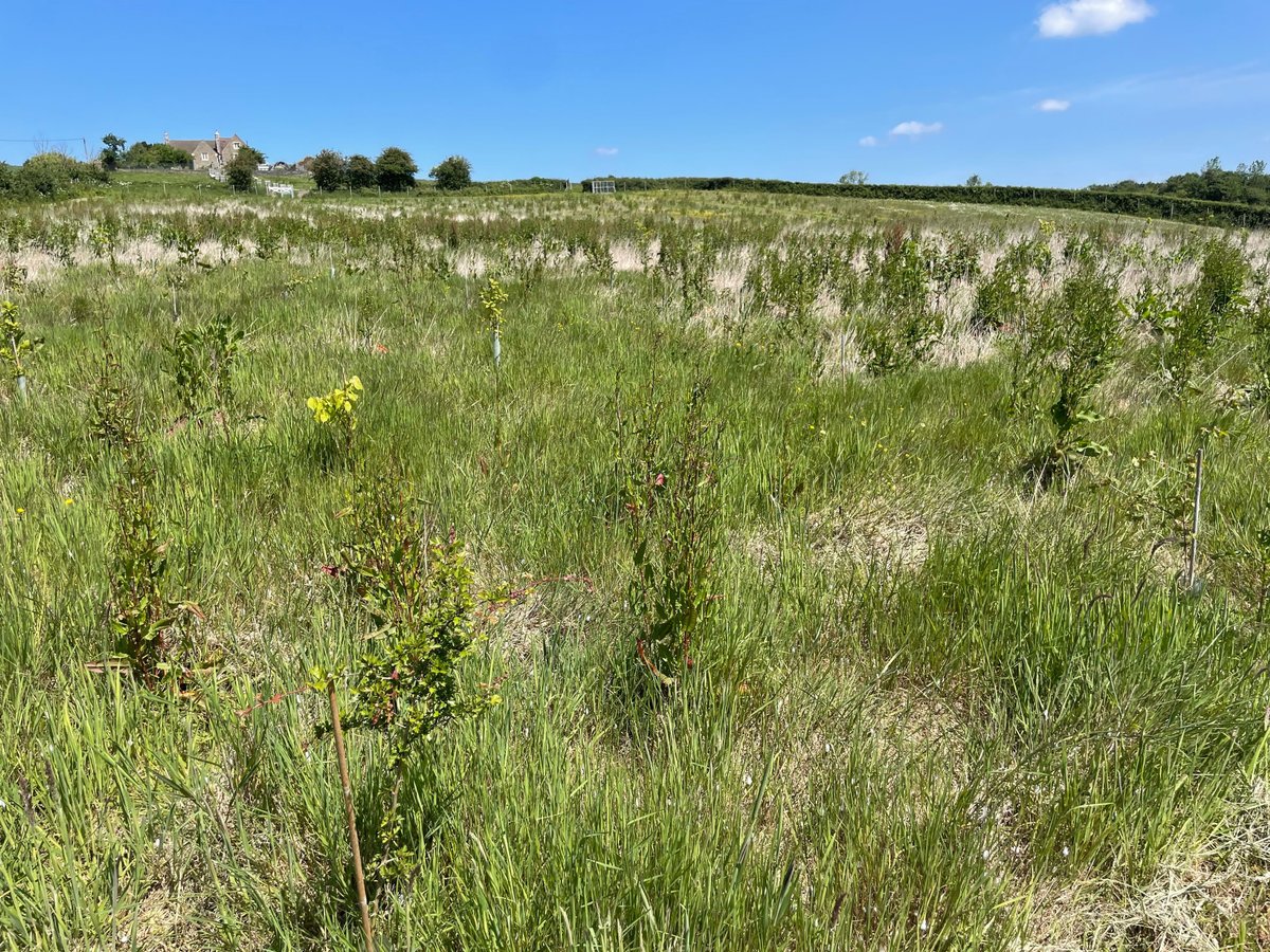 Encouragingly, the poplars are thriving. The oaks, while still small, are looking healthy, and the hawthorn and downy birch are also doing well. Considering the weather conditions and the heavy clay soil, which is prone to cracking and breaking, the site is looking positive overall.