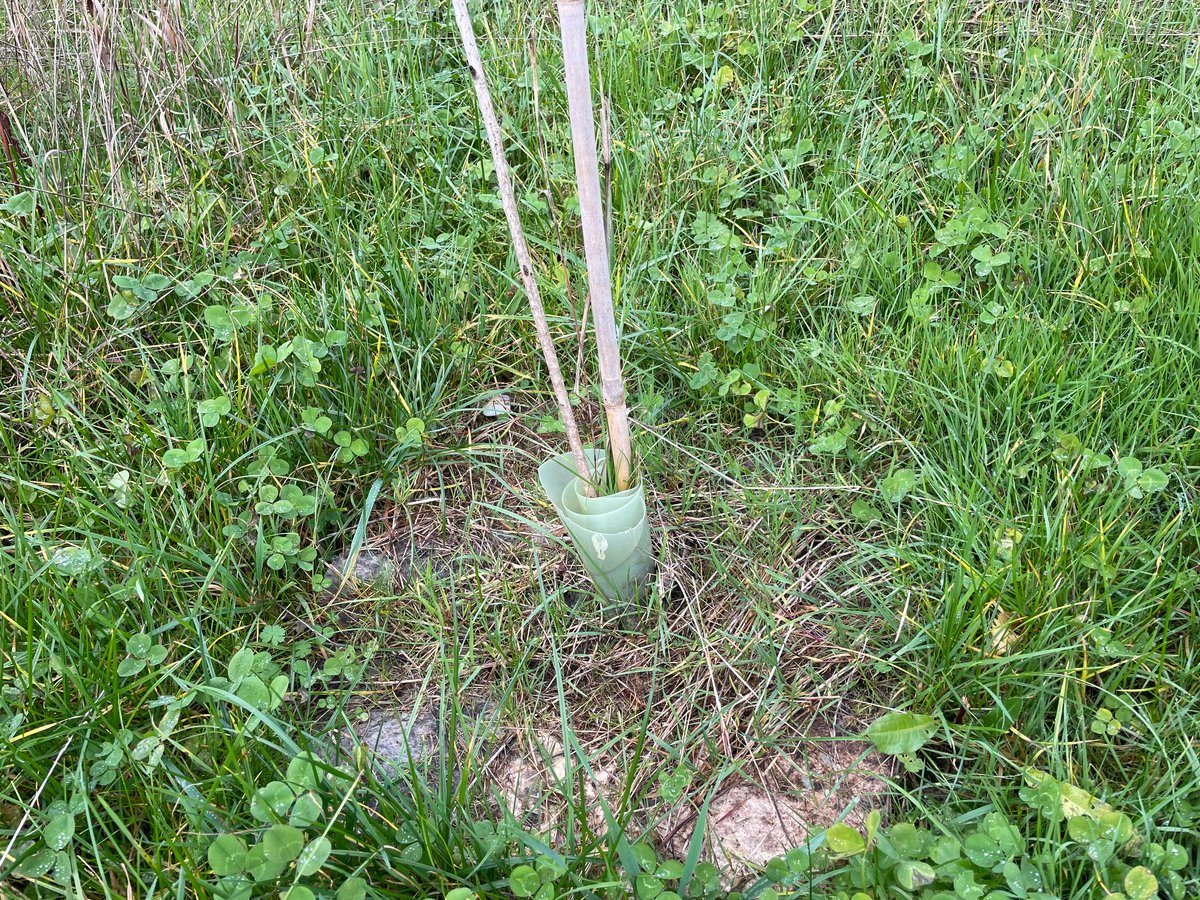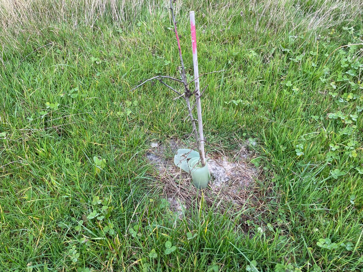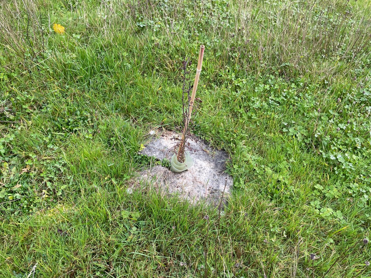 We covered approximately a quarter to a third of the field with the volunteers we had. Progress was relatively slow due to the work involved in clearing competing vegetation, applying mulch, and replacing guards.