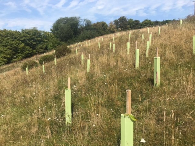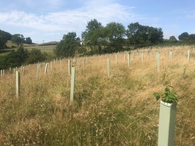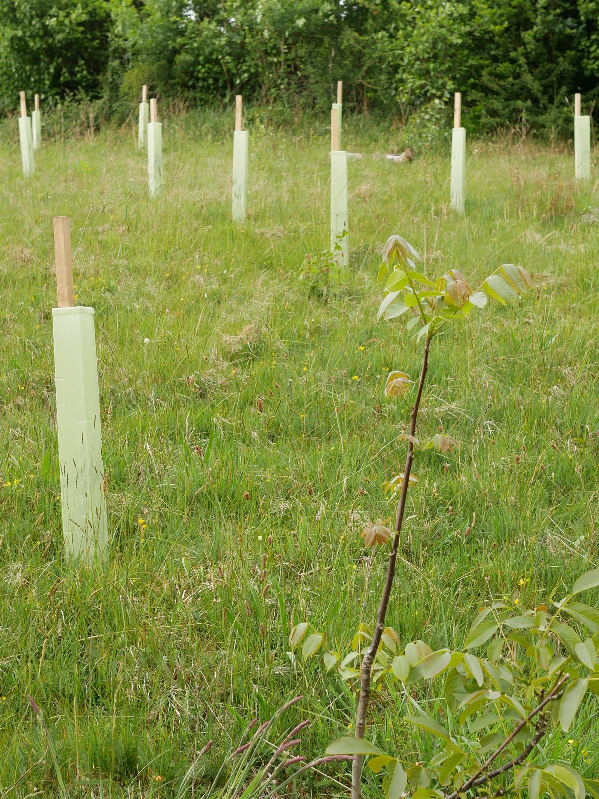 The Landowner said We have seen hares, lots of mice and also a big deer, possibly roe - certainly bigger than muntjac, and we have found antlers! The newer trees are virtually 100% fine, so far.