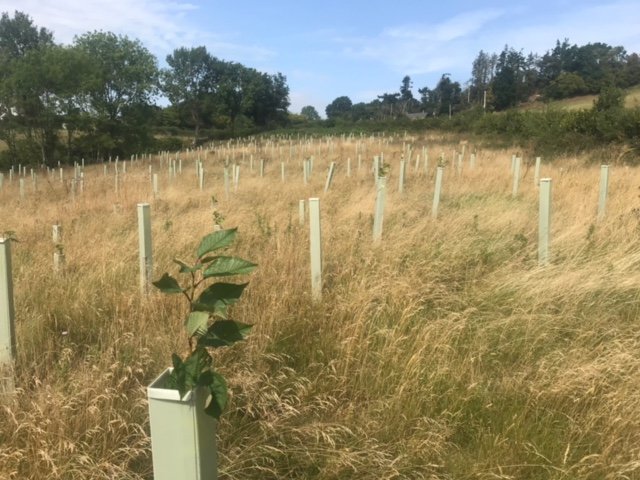 Overall impression - very good. Trees are doing well, all shelters vertical - site looks well looked after. 92% survival rate.