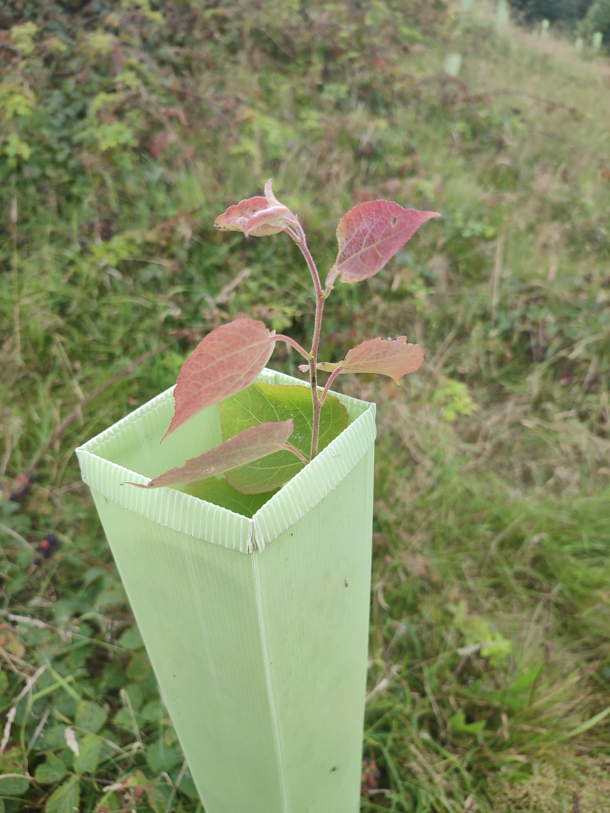 We surveyed the 3 separate fields and the hedgerow. On 2 of the fields, there was a slight bramble encroachment; however, 95% of trees are in great health, although some are showing signs of powdery mildew. The Hedgerow was a bit gappy - 70% survival rate, so we will arrange a restock for the hedgerow.