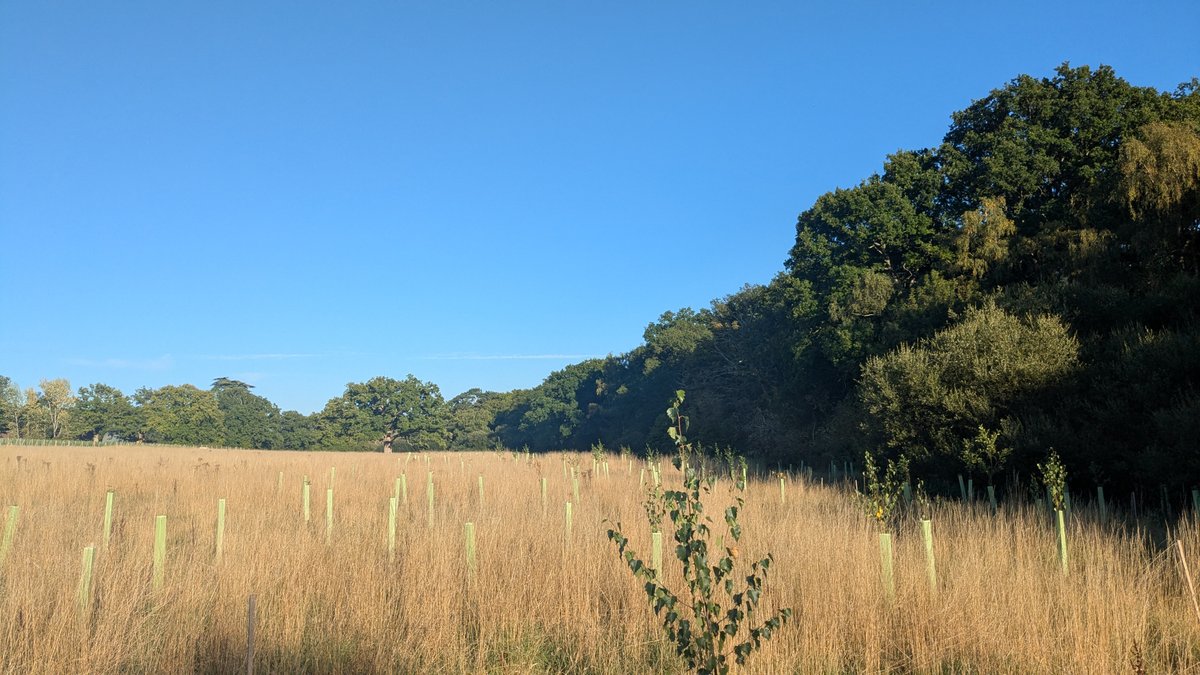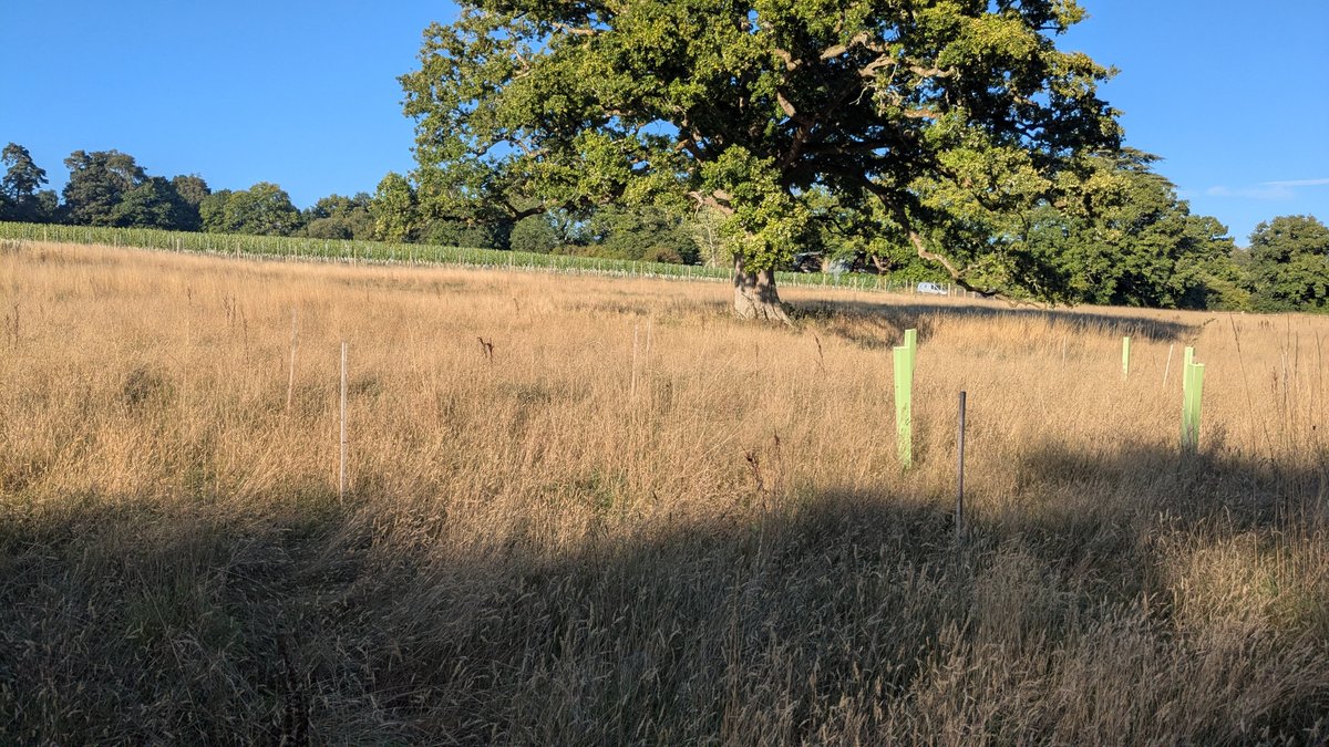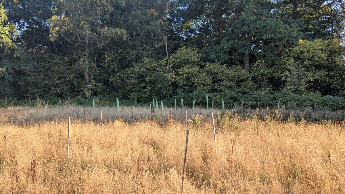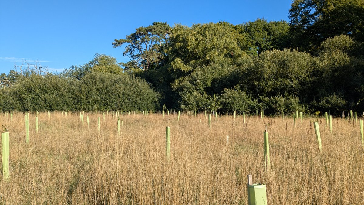 Two corporate teams joined and got the work done in short order, leaving us time in the afternoon to tidy up some of the long grass. In addition to the saplings we planted, another 100+ self-seeded oaks joined in! They were all heavily browsed by deer and looked more like short shrubs than oak trees. Now these struggling oak saplings are guarded and will be able to thrive as part of our woodland.
