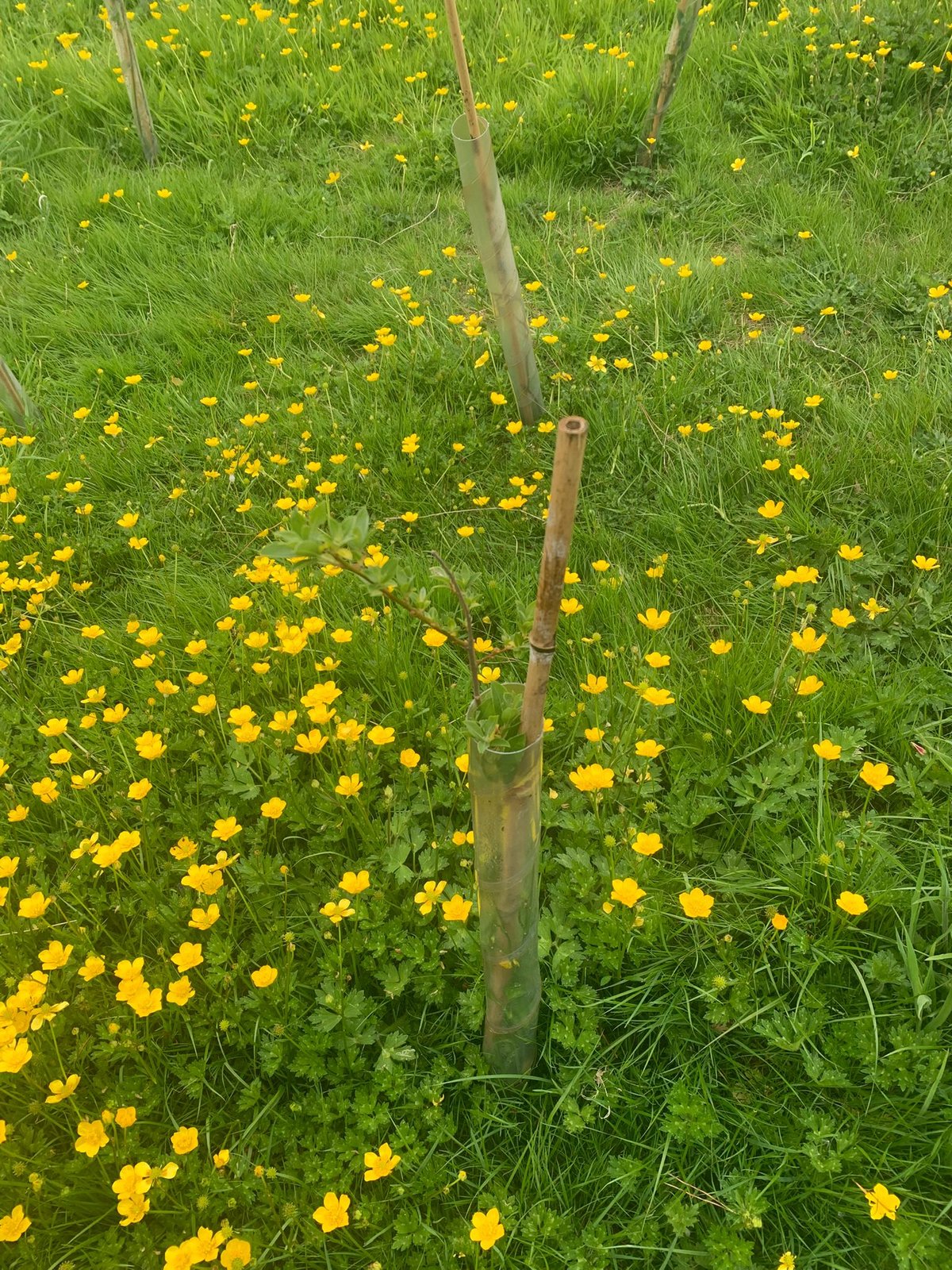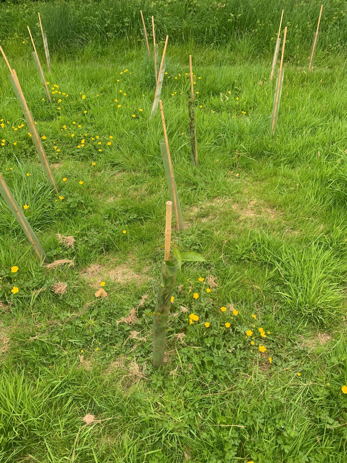 We sampled 50 trees in the first planting zone, and the survival rate is 84%. Anything that looked in serious distress was classified as dead, so the survival figure could be higher. The dead saplings appeared to be ones that never established, i.e. no signs of growth.