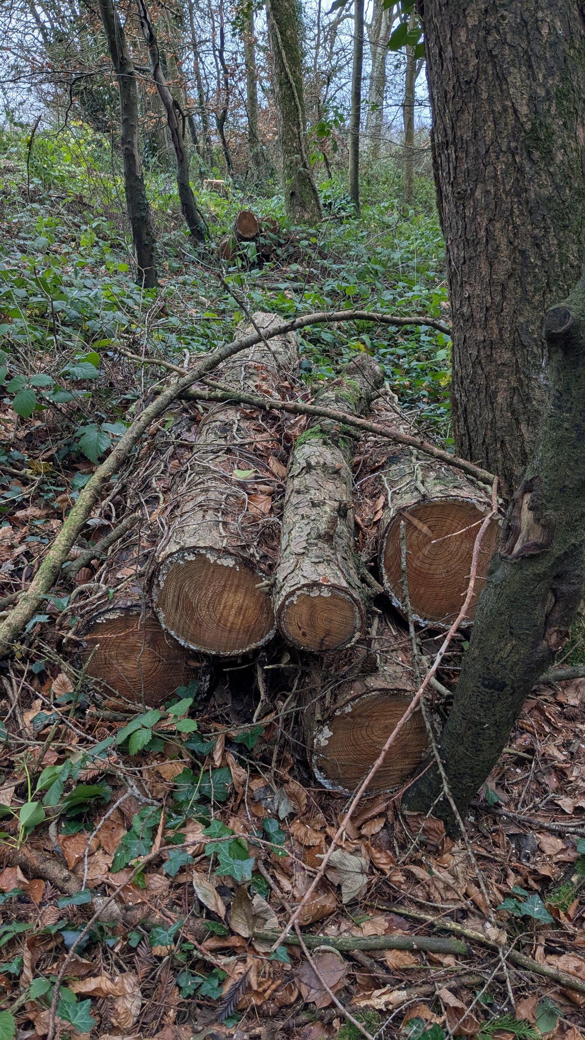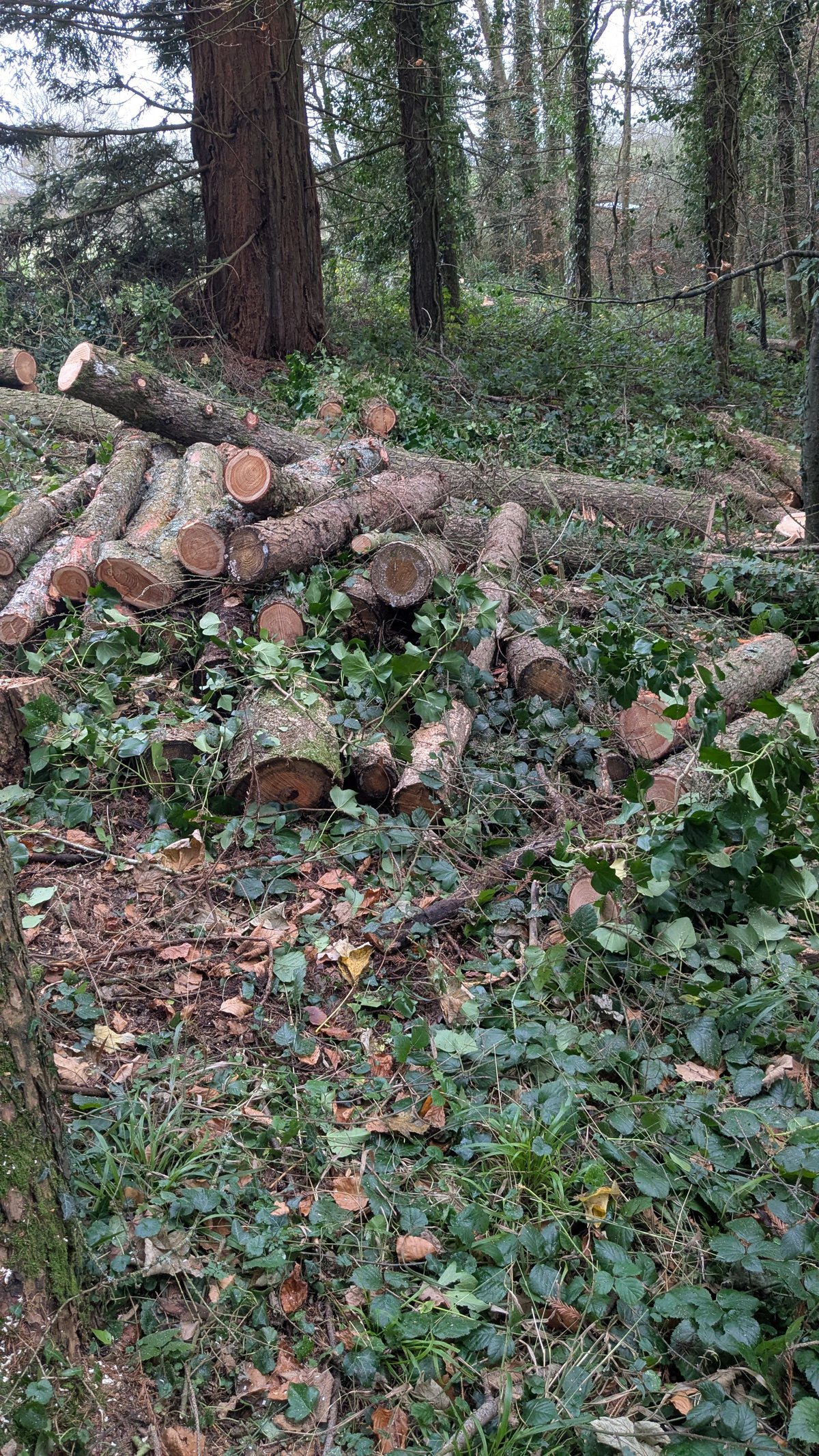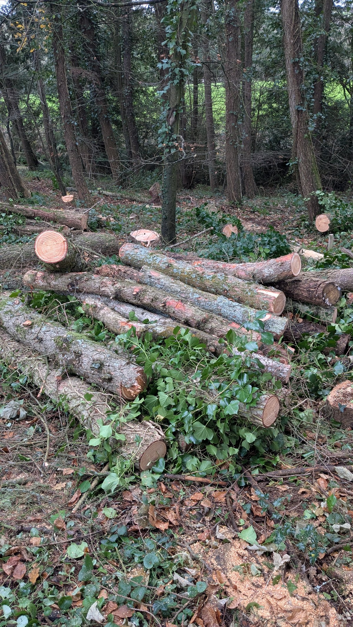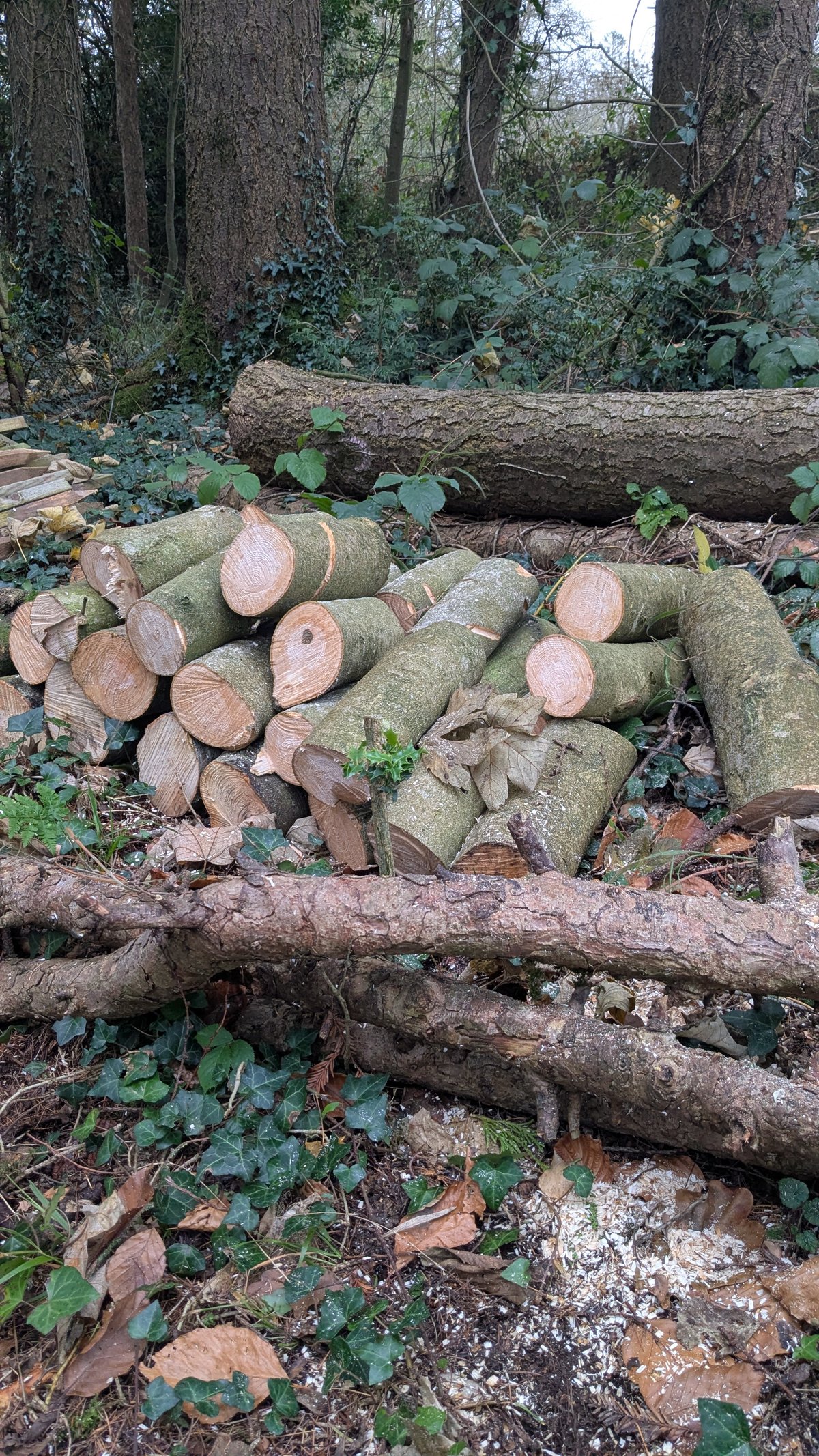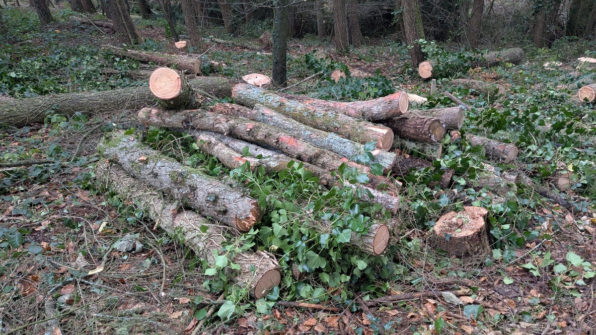 In total, we removed approximately 5 cubic metres (m³) of timber, most of which is now neatly stacked and ready for future use. The site may look a little untidy at first glance, but it has been left in a safe and manageable condition, and everything has been done with biodiversity and long-term woodland recovery in mind.