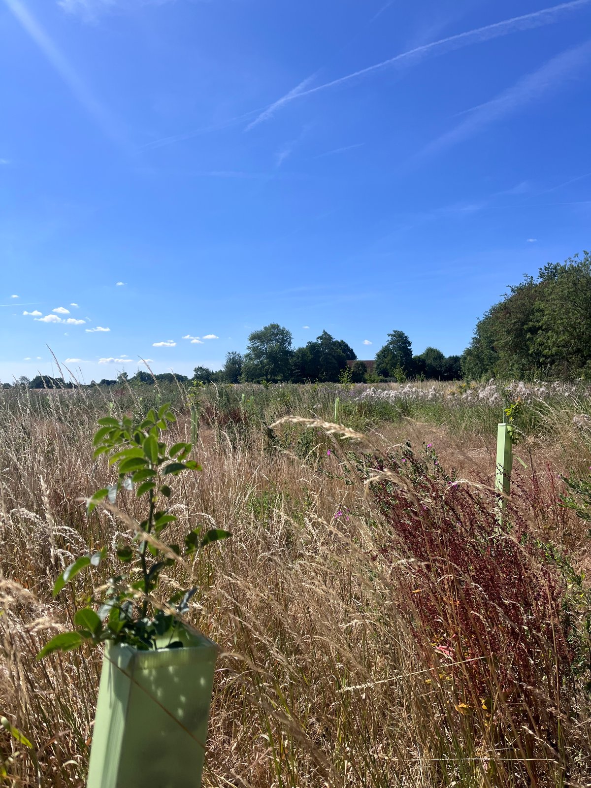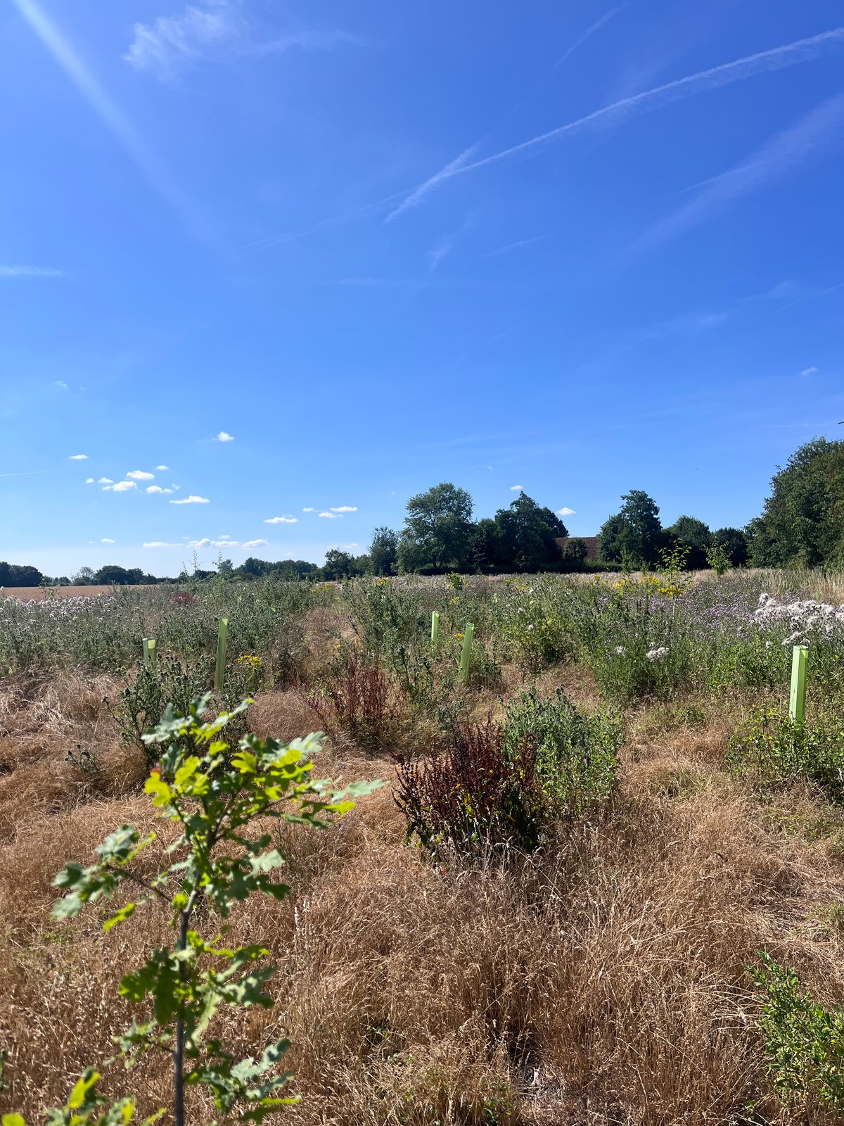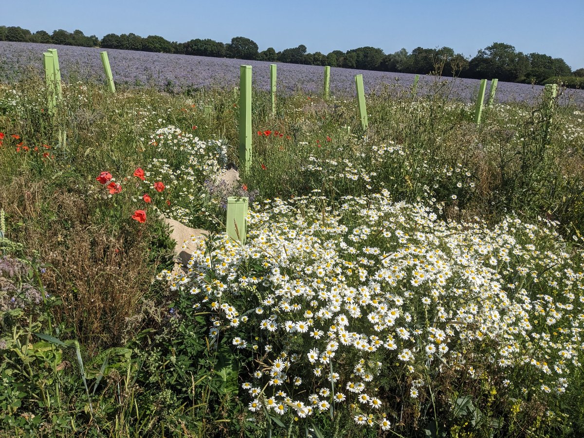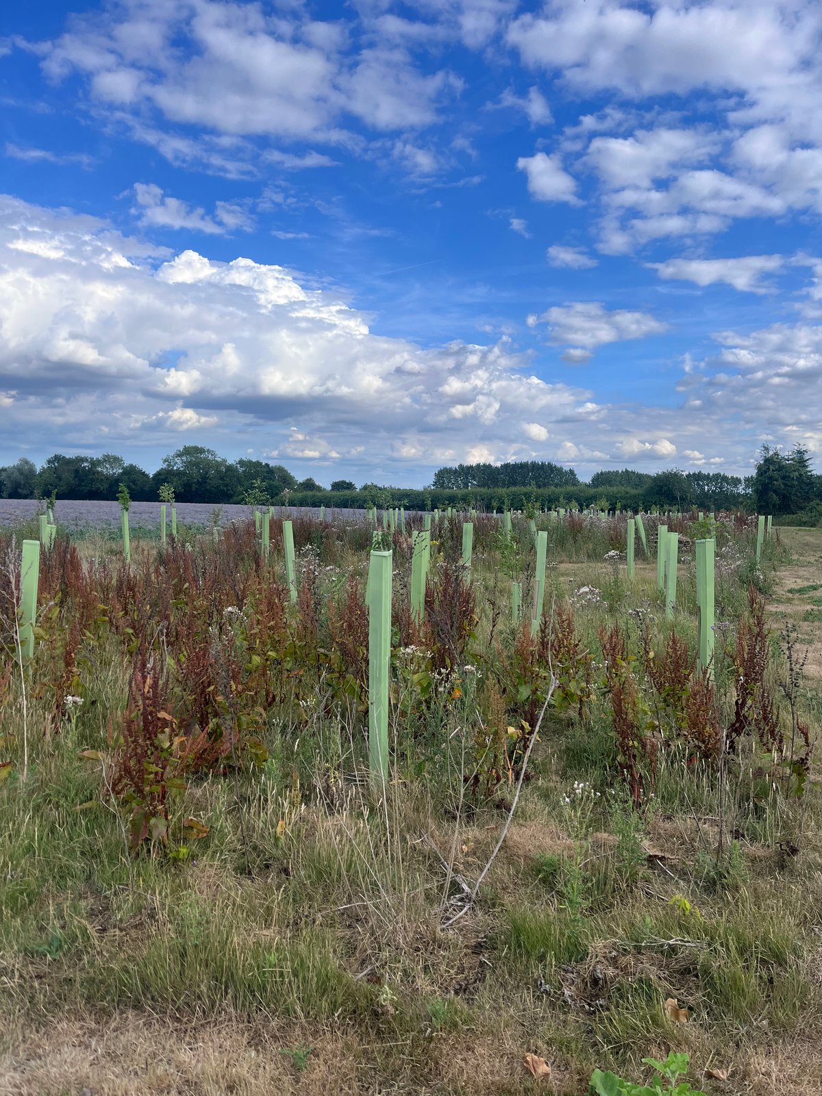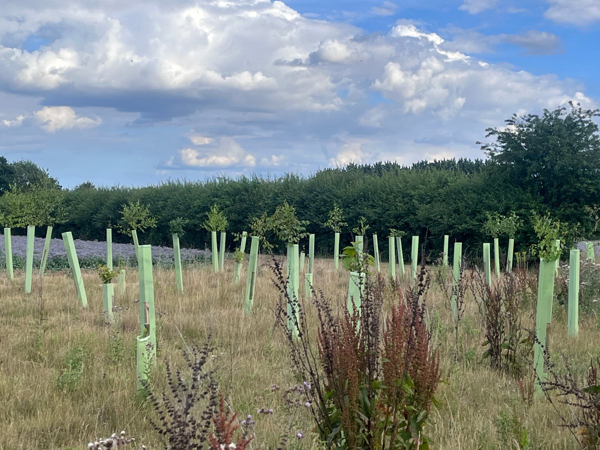 The two areas on site are a bit different - the area planted near the farmyard has a 86% survival rate, and the area further away is about 70%. The failures seem to be scattered throughout the site, so there’s not a particular area or tree type that has done less well. There have also been a few additional trees (field maple) that have self-seeded from the nearby green lane in the lower survival area.